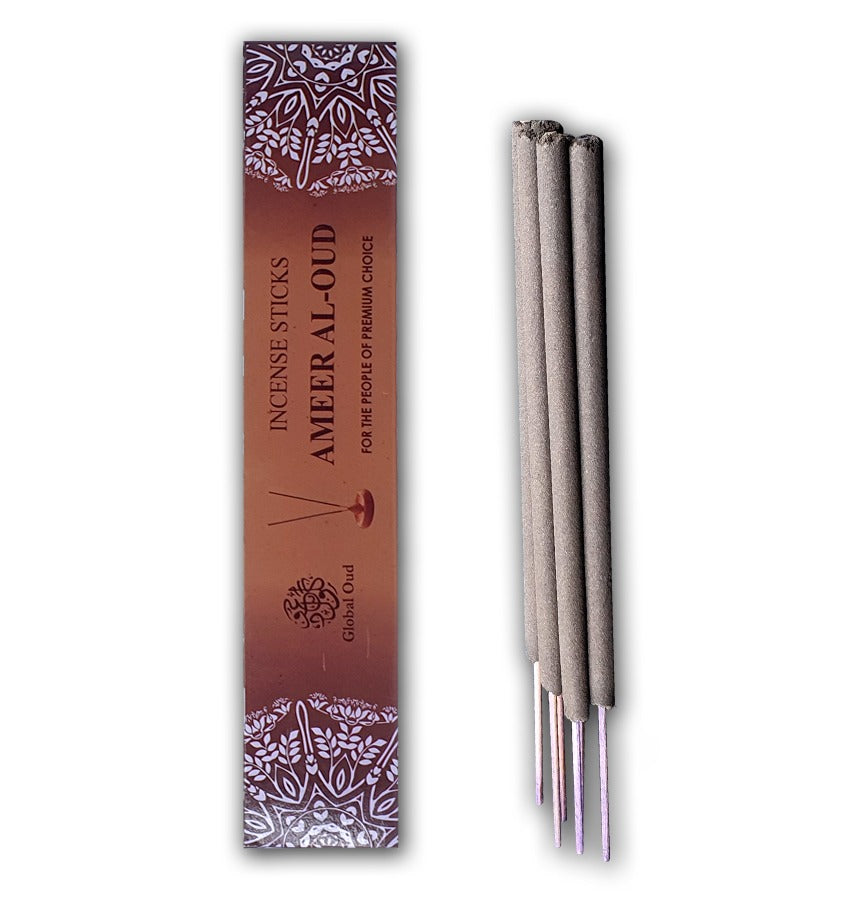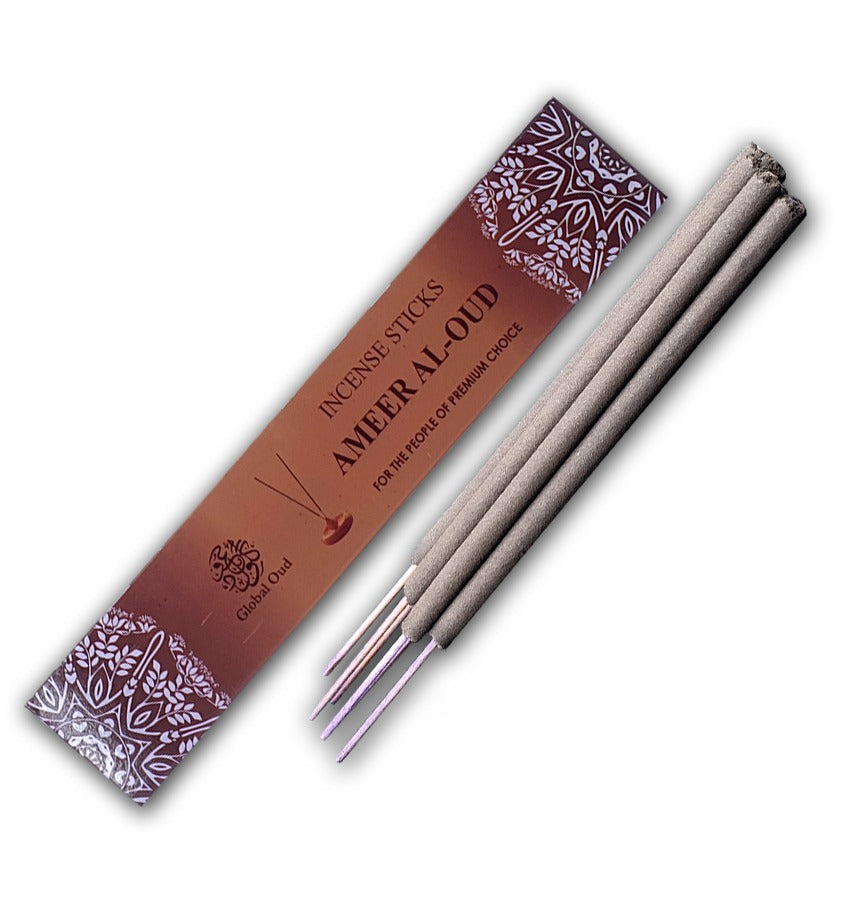 AMEER AL OUD: Ameer al oud incense sticks are a type of incense known for their deep, rich, and often exotic fragrance. Ameer al oud has been a prized material for incense due to its woodsy, vanilla and herbal aroma.