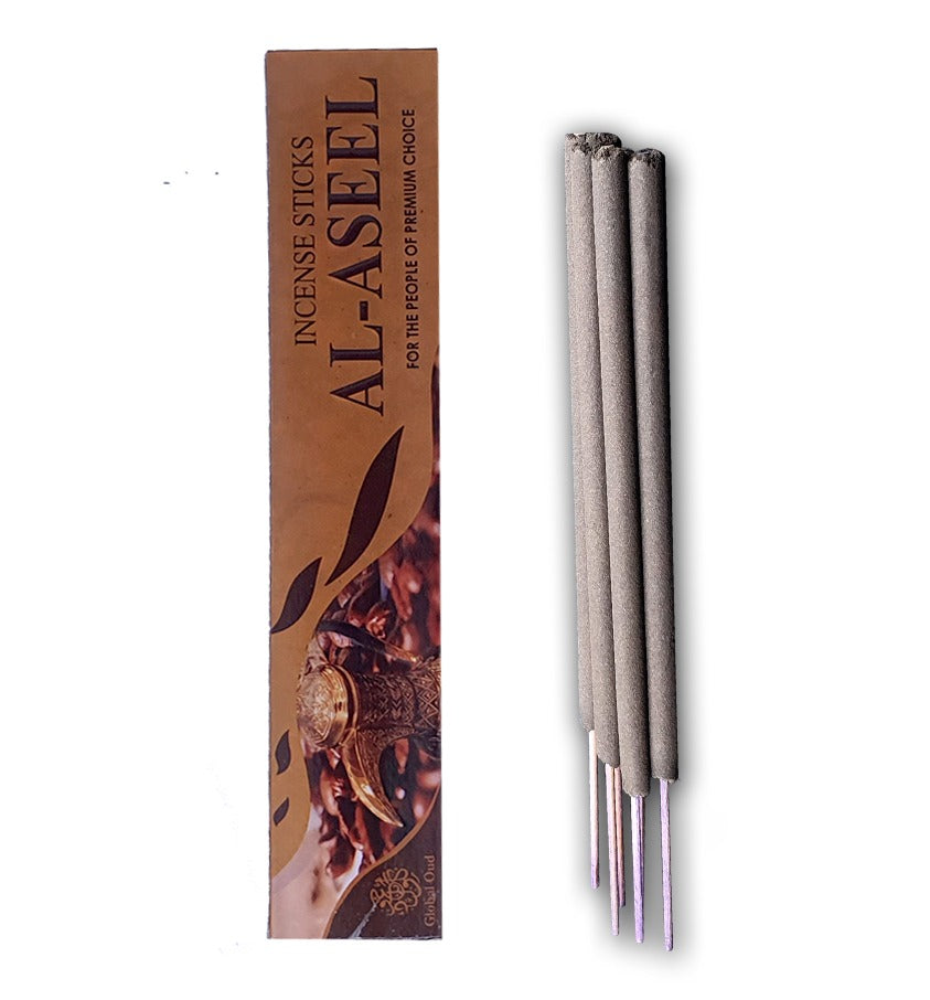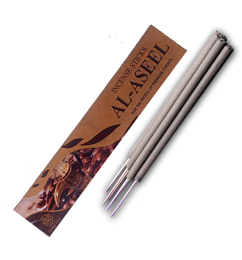 ASEEL: Aseel incense sticks are a type of incense known for their deep, rich, and often exotic fragrance. Aseel has been a prized material for incense due to its cardamom, floral, musk and amber.